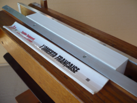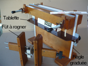 Réglage de la tablette en hauteur selon les règles graduées de façon à couper le minimum (juste l'épaisseur de colle)