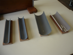 Nota concernant l'arrondi du dos : les observations montrent que l'arrondi a tendance à diminuer après l'endossure. En conséquence, il est préférable de choisir une gouttière avec un rayon plus prononcé. | ![]() Gouttières de différents rayons |