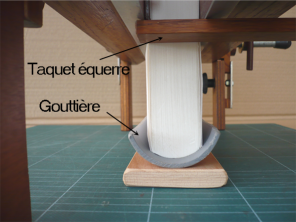 Vérifier le positionnement de la gouttière, de telle sorte que le livre soit perpendiculaire au plan d'appui (table) et parallèle à la presse