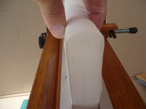 L'ensemble des feuilles, les plats de couverture ainsi qu'un feuillet de garde de chaque côté, vont être positionnés pour obtenir un bon alignement de la tranche de tête, ainsi qu'une forme arrondie du dos.